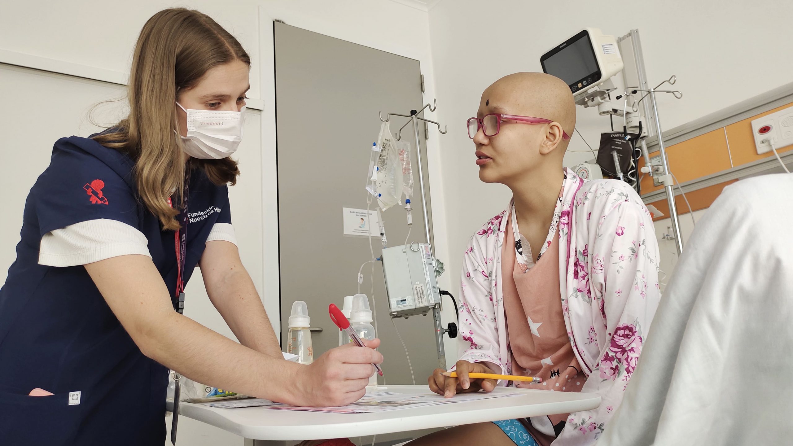 Eso podría haber ocurrido con María Estella, una estudiante de 13 años que está en tratamiento oncológico «por un rabdomiosarcoma embrionario diagnosticado en septiembre del año pasado» nos cuenta su madre, María, pero afortunadamente para ella y los cerca de 500 NNA que se diagnostican año a año, los colegios hospitalarios se han consolidado como un modelo educativo único y exitoso de alto impacto social en Chile, caracterizado por la existencia de aulas al interior de hospitales a cargo de profesores multigrado, es decir, docentes que enseñan en una misma sala a estudiantes de distintos niveles.